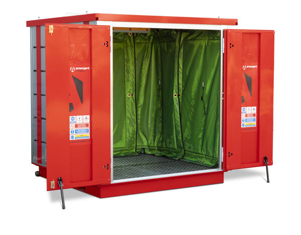 Equipped with catches for safely securing the doors open during use.