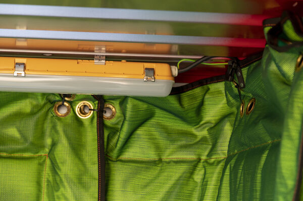 Built in 110v LED strip lights for visibility.