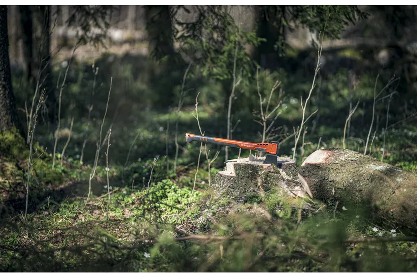 The balance point close to the axe head gives perfect balance and weight distribution. The combination of the optimized axe head and the light shaft concentrates the power into the cut which gives an easier split of the logs. Fibre-reinforced PA shaft makes the axe durable and robust.