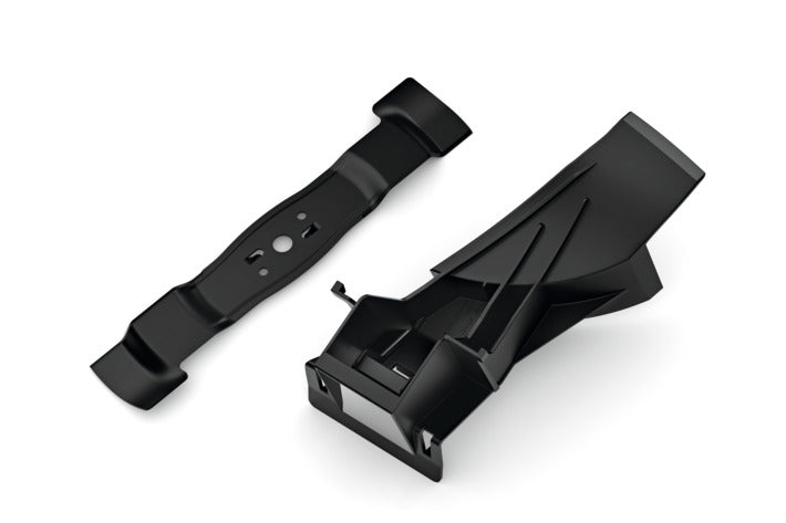 The retrofittable mulching kit shreds the grass into fine grass particles during mowing. The fine grass clippings can then fall back onto the turf as a nutritious fertiliser. The accessory kit is only suitable for RMA 443 VC cordless lawn mower. 41 cm cutting width. Kit consists of a multi-blade and mulch insert.